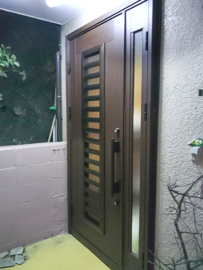 玄関ドアの色は、外観と合いそうなものをご提案させて頂きました。リフォーム後、気に入ってもらえたようで良かったです。