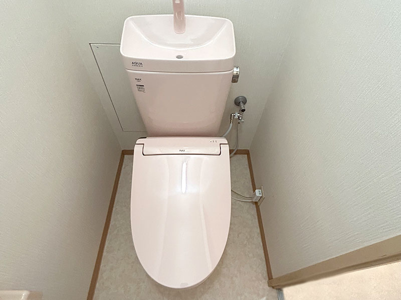 明るく華やかなピンクが映える!お掃除ラクラクなレストルーム